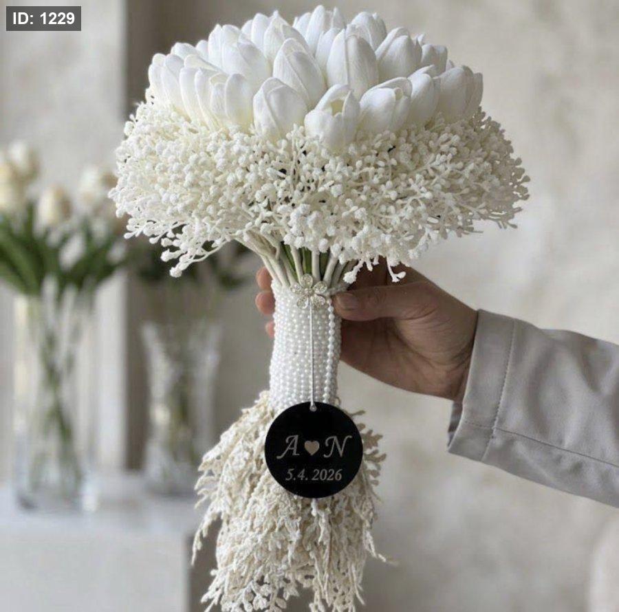 مسكة فخمة مصنوعة من التوليب والثلج الأبيض