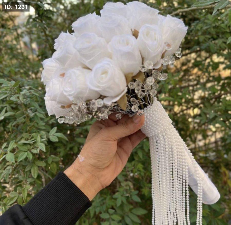 مسكة من الورد الأبيض مع الكريستال وشلال اللولو